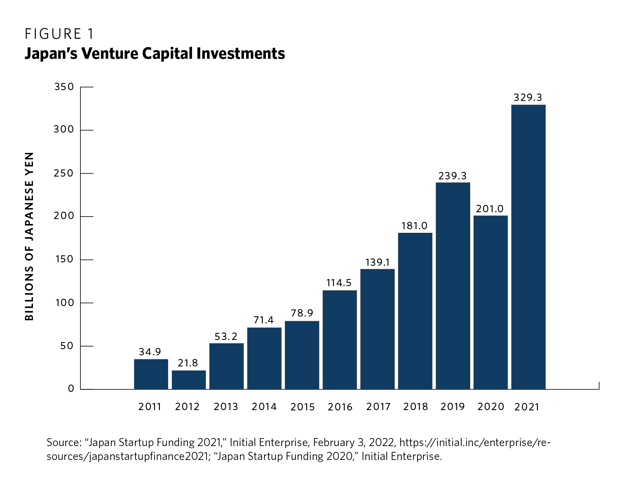 Source: “Japan Startup Funding 2020,” Initial Enterprise, February 25, 2021, https://initial.inc/articles/japan-startup-funding-2020-en.